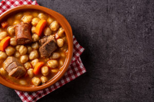 - Taco de Jamón Ibérico (50% Raza Ibérica) con Garbanzos: Añade zanahorias, pimientos y un sofrito aromático; deja cocer a fuego lento para intensificar el sabor.
